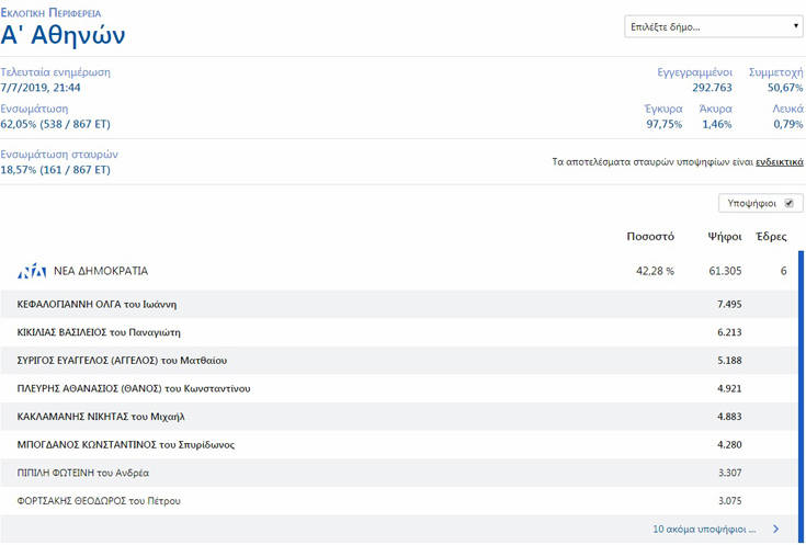 Επιπλέον από τη ΝΔ στην Α’ Αθηνών φαίνεται να εκλέγονται οι: Κεφαλογιάννη Όλγα, Κικίλιας Βασίλης, Συρίγος Άγγελος, Πλεύρης Θάνος και Κακλαμάνης Νικήτας. Εκτός μένουν οι: Φωτεινή Πιπιλή και Θεόδωρος Φορτσάκης.