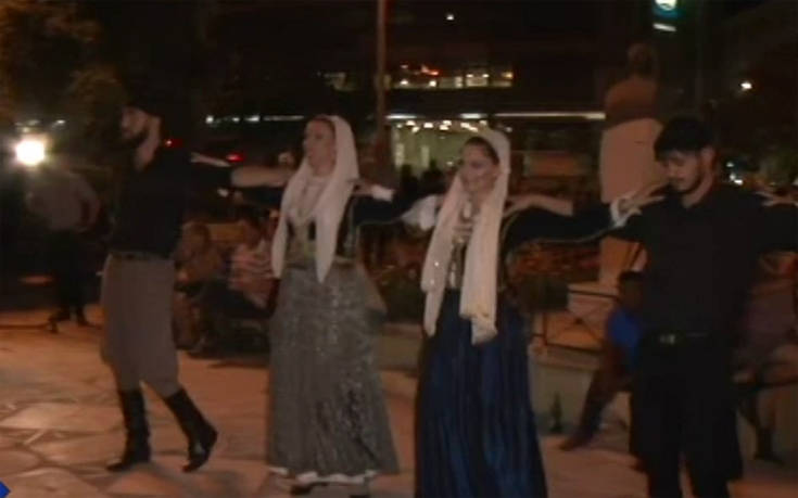Στο χωριό έχει στηθεί ένα πανηγύρι, με τον κόσμο να χορεύει παραδοσιακούς χορούς υπό τους ρυθμούς της κριτικής λύρας.