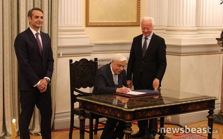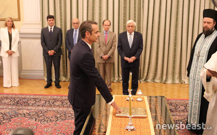 Ορκίστηκε πρωθυπουργός ο Κυριάκος Μητσοτάκης μετά τη μεγάλη νίκη που εξασφάλισε στη Νέα Δημοκρατία στις εθνικές εκλογές 2019.