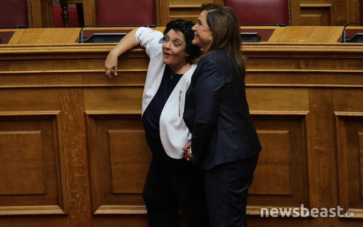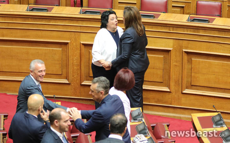 Η βουλευτής της Νέας Δημοκρατίας είχε αρκετούς εγκάρδιους χαιρετισμούς με πολλούς συνάδελφους της τόσο από τη Νέα Δημοκρατία όσο και από άλλα κόμματα. Χαρακτηριστικό είναι το στιγμιότυπο με την Λιάνα Κανέλλη, με τις δύο κυρίες να έχουν μια ιδιαίτερα θερμή στιγμή.
