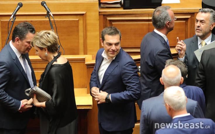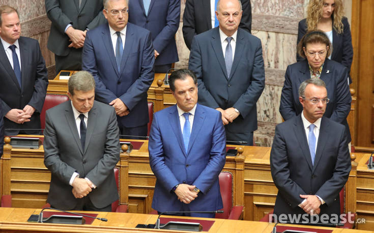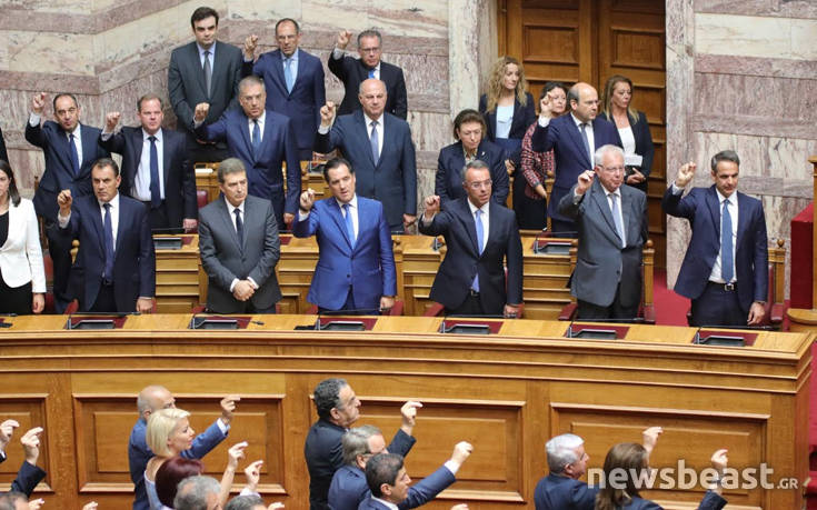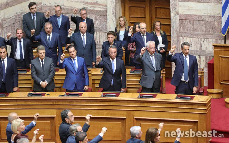 «Απέναντι» στη νέα κυβέρνηση είναι η αντιπολίτευση με αρχηγό τον Αλέξη Τσίπρα. Όπως βλέπετε στις φωτογραφίες του newsbeast.gr, όλοι οι βουλευτές ορκίστηκαν φορώντας τα κουστούμια τους ενώ η πλειοψηφία των βουλευτών είναι άντρες.