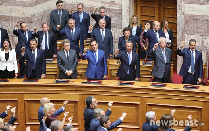 Στη Βουλή εκπροσωπούνται έξι κόμματα, η Νέα Δημοκρατία με 158 έδρες, ο ΣΥΡΙΖΑ- Προοδευτική Συμμαχία με 86, το Κίνημα Αλλαγής με 22, το ΚΚΕ με 15, η «Ελληνική Λύση» με 10 έδρες, η «Μέρα 25» με 9 έδρες.