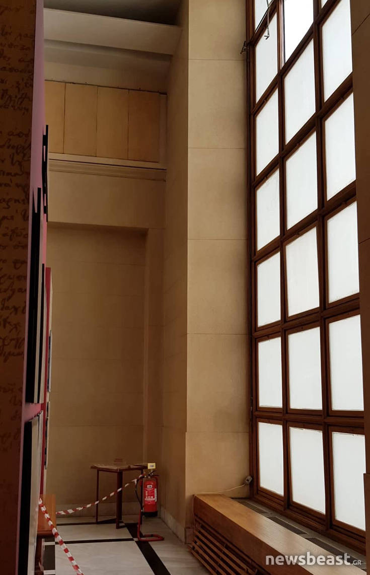 Ευτυχώς είναι καλός ο καιρός και… δεν φυσάει πολύ απ’ το σπασμένο τους το τζάμι στη Βουλή, που πριν από λίγα λεπτά ξεκίνησε τις τριήμερες εργασίες ανάγνωσης και συζήτησης επί των προγραμματικών δηλώσεων της κυβέρνησης. Το εν λόγω τζάμι έσπασε χθες κατά τη διάρκεια της ισχυρής σεισμικής δόνησης, κατόπιν αφαιρέθηκε από τις αρμόδιες υπηρεσίες του Κοινοβουλίου αλλά όπως φαίνεται και από τη φωτογραφία που τραβήχτηκε πριν από λίγη ώρα, ακόμη δεν έχει αντικατασταθεί.