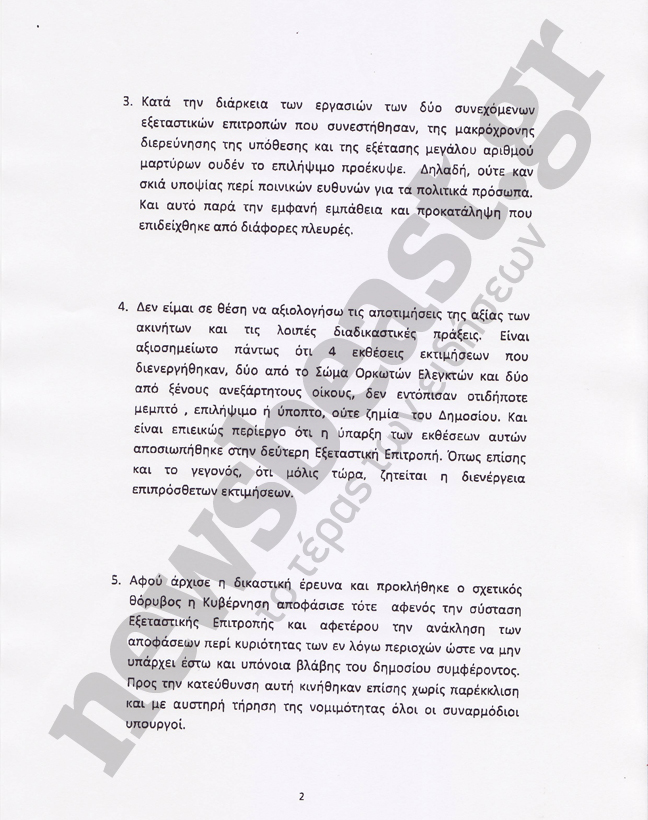 -Από τις εξεταστικές επιτροπές ουδέν το επιλήψιμο προέκυψε, δηλαδή ούτε καν σκιά υποψίας περί ποινικών ευθυνών για τα πολιτικά πρόσωπα.