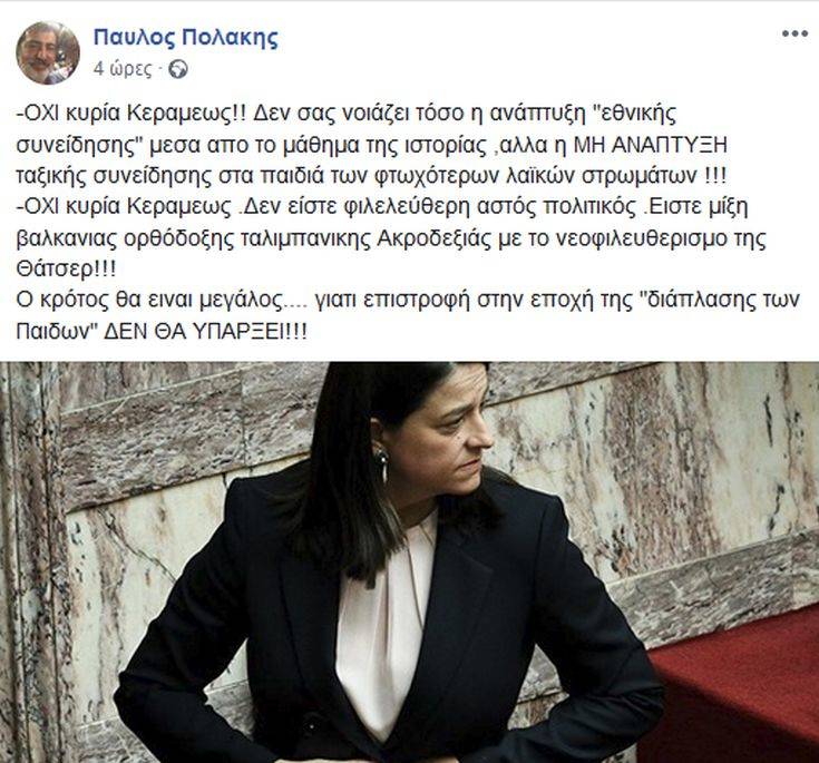«ΟΧΙ κυρία Κεραμεως!! Δεν σας νοιάζει τόσο η ανάπτυξη “εθνικής συνείδησης” μεσα απο το μάθημα της ιστορίας ,αλλα η ΜΗ ΑΝΑΠΤΥΞΗ ταξικής συνείδησης στα παιδιά των φτωχότερων λαϊκών στρωμάτων !!!