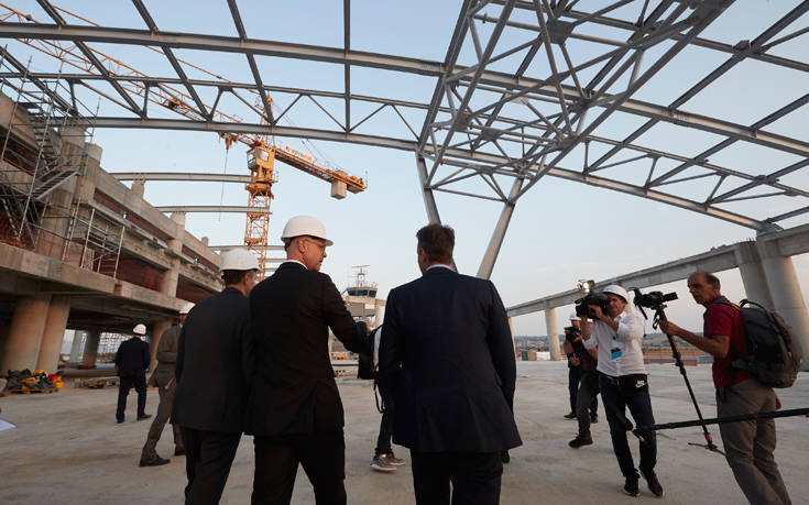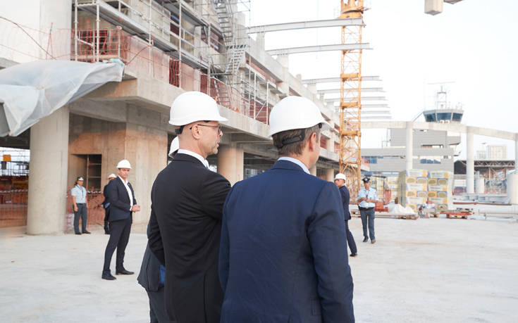 Τον πρωθυπουργό υποδέχθηκε ο Διευθύνων Σύμβουλος της Fraport Greece κ. Αλεξάντερ Ζίνελ, ο οποίος και τον ξενάγησε στους δύο ορόφους του εργοταξίου και τον ενημέρωσε εκτενώς για την πρόοδο των έργων.