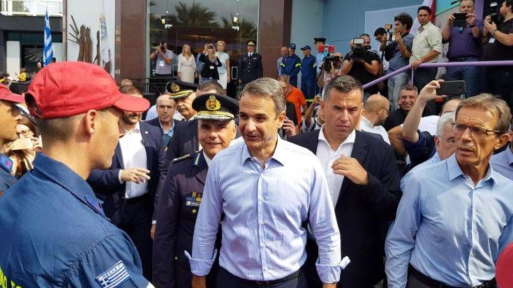 Τους άνδρες του Πυροσβεστικού Σώματος που συνδράμουν στην κατάσβεση των πυρκαγιών είδε μεταξύ άλλων κατά τη διάρκεια της περιήγησής τους στα περίπτερα της 84ης Διεθνούς Εκθέσεως Θεσσαλονίκης ο πρωθυπουργός Κυριάκος Μητσοτάκης.