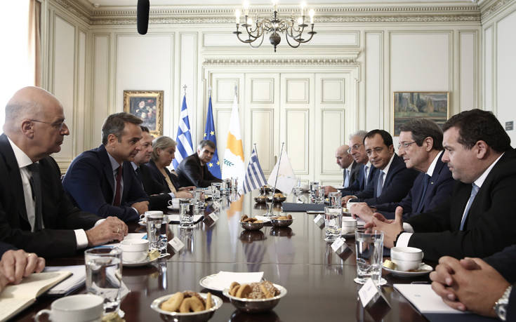 «Ο πρωθυπουργός της Ελλάδας και ο Πρόεδρος της Κυπριακής Δημοκρατίας επαναλαμβάνουν την απόλυτη βούλησή τους για επανέναρξη ουσιαστικών διαπραγματεύσεων που θα οδηγήσουν σε μία βιώσιμη και λειτουργική λύση του Κυπριακού, χωρίς εγγυήσεις και ξένα στρατεύματα, στη βάση του διεθνούς δικαίου, σύμφωνα με τα ψηφίσματα και τις αποφάσεις των Ηνωμένων Εθνών, καθώς και τις αρχές και τους κανόνες της Ευρωπαϊκής Ένωσης» καταλήγει το κοινό ανακοινωθέν.