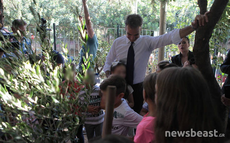 Ο Κυριάκος Μητσοτάκης φωτογραφήθηκε με όλους ενώ έπαιξε και βοήθησε τα παιδιά να ποτίσουν τα δέντρα.
