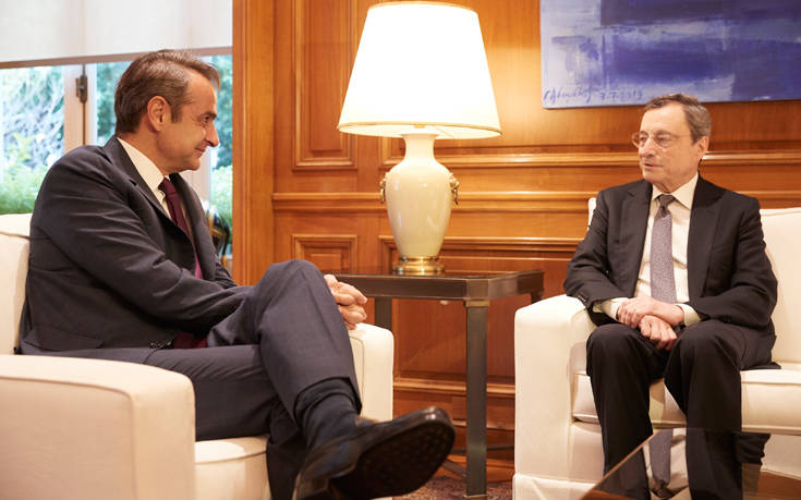 Η δημοσιονομική πορεία της ελληνικής οικονομίας, οι επικείμενες μεταρρυθμίσεις, το νέο επενδυτικό περιβάλλον που διαμορφώνεται στην Ελλάδα μετά τις εθνικές εκλογές του περασμένου Ιουλίου και οι ευρωπαϊκές πολιτικές στο χρηματοπιστωτικό μέτωπο βρέθηκαν στο επίκεντρο της συνάντησης που είχε ο πρωθυπουργός Κυριάκος Μητσοτάκης με τον απερχόμενο πρόεδρο της Ευρωπαϊκής Κεντρικής Τράπεζας, Μάριο Ντράγκι στο Μέγαρο Μαξίμου.