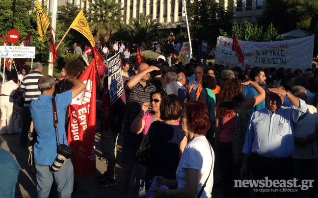Έξω από το ραδιομέγαρο της ΕΡΤ, όπου πραγματοποιείται αυτή την ώρα η συγκέντρωση της ΓΣΕΕ και της ΑΔΕΔΥ προσήλθε πριν από λίγο ο πρόεδρος του ΣΥΡΙΖΑ, Αλέξης Τσίπρας.