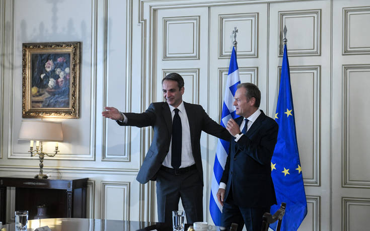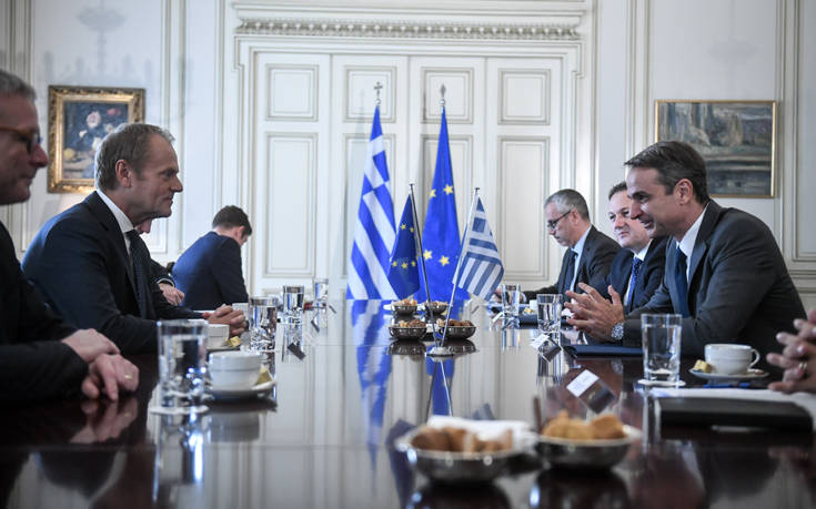Συνάντηση με τον Πρόεδρο του Ευρωπαϊκού Συμβουλίου, Ντόναλντ Τουσκ, είχε το πρωί της Τετάρτης (09/10) ο πρωθυπουργός, Κυριάκος Μητσοτάκης, στο Μέγαρο Μαξίμου.