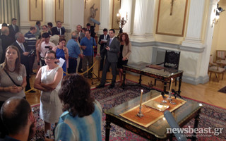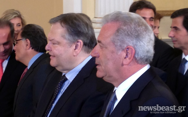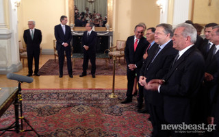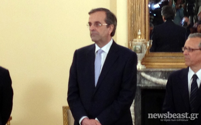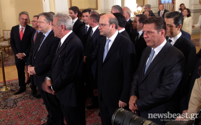 Ενώπιον του Προέδρου της Δημοκρατίας, Κάρολου Παπούλια και παρουσία του πρωθυπουργού, Αντώνη Σαμαρά, ορκίζονται τα μέλη της νέας -δικομματικής πλέον- κυβέρνησης.