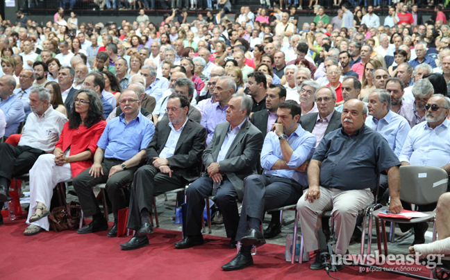 Άρχισε λίγο μετά τις 20:00 το συνέδριο του ΣΥΡΙΖΑ με τα βλέμματα όλων να είναι στραμμένα αφενός στην εισηγητική ομιλία του Αλέξη Τσίπρα μπροστά στους 3.500 συνέδρους και αφετέρου στους προσκεκλημένους του συνεδρίου.