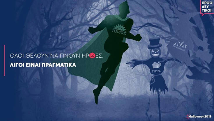 Με μια πρωτότυπη είναι η αλήθεια αφίσα που εμπεριέχει πολλαπλά μηνύματα θέλησε το ΠΑΣΟΚ να γιορτάζει το Halloween.