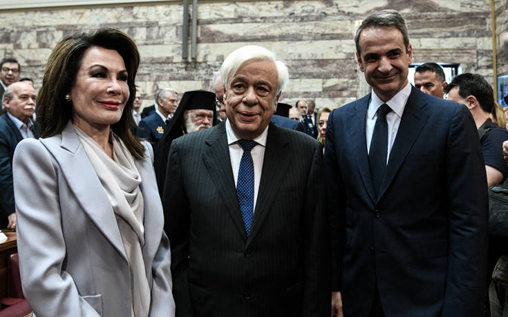 «Ας κοιταχτούμε, λοιπόν, στον καθρέφτη με θάρρος και με ειλικρίνεια. Θα εκτιμήσουμε και τη λάμψη του βλέμματος αλλά και τις ρυτίδες του προσώπου της σύγχρονης Ελλάδας. Γιατί το ισοζύγιο είναι συντριπτικά θετικό: Στα χρόνια αυτά, η Ελλάδα ξέφυγε οριστικά από την ανέχεια “του πτωχού που θυροδέρνει”, όπως γράφει και ο εθνικός μας ποιητής. Μία παλιά μικρή οθωμανική επαρχία είναι, τώρα, μία ισχυρή ευρωπαϊκή χώρα. Που αφήνει πίσω της την κρίση και ανανεώνει την πίστη της στο μέλλον. Είναι, πλέον, “σαν πρώτα ανδρειωμένη”, όπως αναφέρεται και πάλι στον εθνικό μας ύμνο», υπογράμμισε ο κ. Μητσοτάκης.