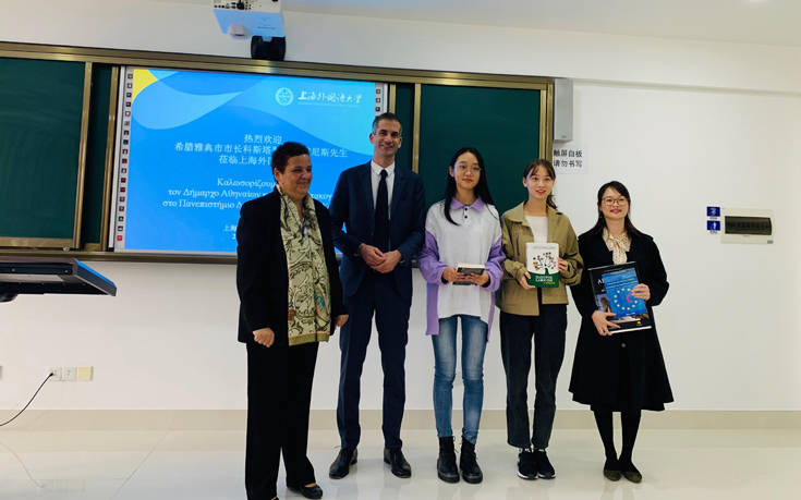 Πολύ σημαντική ήταν και η επίσκεψή του στο Shanghai International Studies University, όπου συναντήθηκε με τον πρύτανη και με φοιτητές του Τμήματος Νέων Ελληνικών Σπουδών, που είναι το πρώτο που ιδρύθηκε σε Πανεπιστήμιο της Κίνας και συγκεντρώνει την προτίμηση πολλών φοιτητών. Συμφωνήθηκε, μάλιστα, να υπάρξει συνεργασία με τον δήμο Αθηναίων μέσω του Εθνικού Καποδιστριακού Πανεπιστημίου, που ήδη συνεργάζεται με το συγκεκριμένο Πανεπιστήμιο.