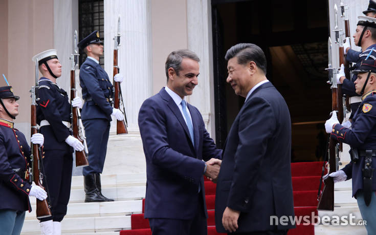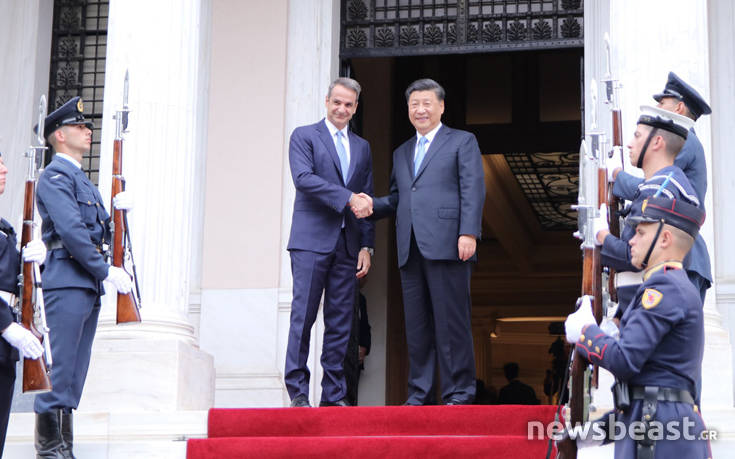 Με τον Κυριάκο Μητσοτάκη συναντάται αυτήν την ώρα στο Μέγαρο Μαξίμου ο Κινέζος Πρόεδρος Σι Τζινπίνγκ.