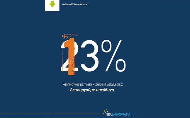 «Λειτουργούμε υπεύθυνα. Ανοίγουμε το δρόμο και για άλλες φορολογικές μειώσεις» αναφέρει η Νέα Δημοκρατία σε μήνυμά της που δημοσίευσε στο Facebook για τη μείωση του ΦΠΑ στην εστίαση που τέθηκε σε ισχύ από την Πέμπτη 1 Αυγούστου.