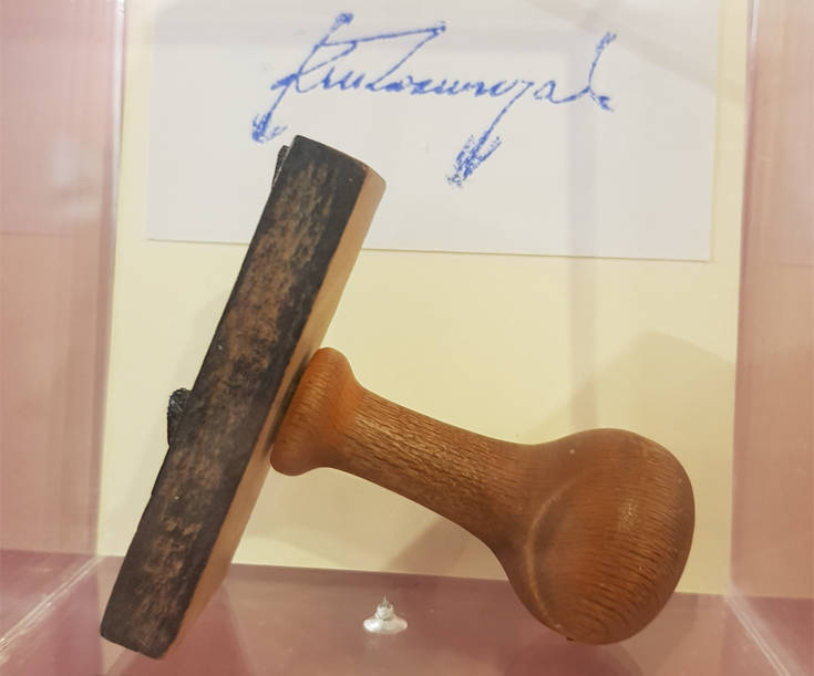 9. Η σφραγίδα του Κωνσταντίνου Παπακωνσταντίνου, προέδρου της Ε’ Αναθεωρητικής Βουλής (1974 – 1977), της πρώτης μετά την αποκατάσταση της Δημοκρατίας.