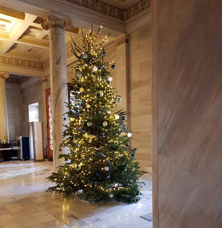 Τώρα όμως ο Κώστας Τασούλας έκρινε σκόπιμο να στήσει και πάλι στους διαδρόμους του μεγάρου δύο μεγάλα Χριστουγεννιάτικα δέντρα, το ένα στο Περιστύλιο του Περικλέους που βρίσκεται ακριβώς μπροστά από την πλατεία Συντάγματος (όπως μαρτυρούν και οι φωτογραφίες που παρουσιάζουμε) και το άλλο στο εκτευκτήριο των βουλευτών. Παράλληλα σε κάποιες γωνιές πάντως υπάρχουν και κάποια από τα καραβάκια.