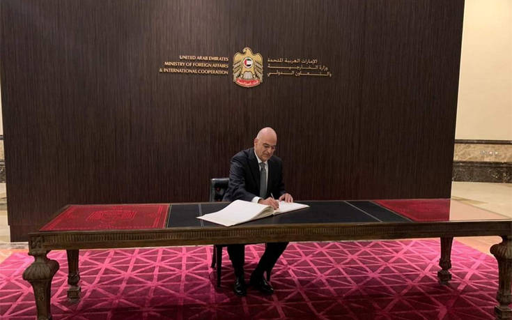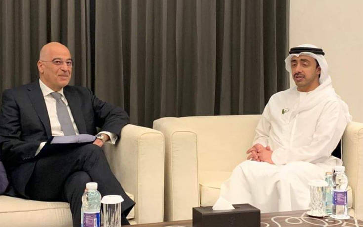 Την ικανοποίησή του ότι τα Ηνωμένα Αραβικά Εμιράτα συμμερίζονται τις ανησυχίες της Ελλάδας σχετικά με τα μνημόνια της κυβέρνησης της Τρίπολης και της Τουρκίας, εξέφρασε από το Άμπου Ντάμπι, μετά τη συνάντησή του με τον ομόλογό του, σεΐχη Αμπντουλάχ Μπιν Ζαϊντ Αλ Ναχιάν (Abdullah bin Zayed Al Nahyan), ο υπουργός Εξωτερικών, Νίκος Δένδιας και ανακοίνωσε πως οι δύο χώρες αποφάσισαν να συντονίσουν τις ενέργειες τους, όπως αναφέρει το Αθηναϊκό Πρακτορείο Ειδήσεων.