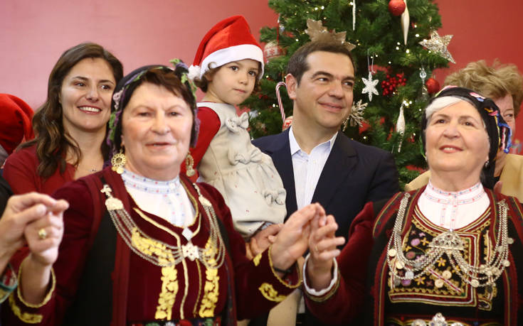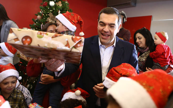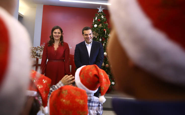 Αρχικά, ο τέως πρωθυπουργός και η σύζυγός του, Μπέτυ Μπαζιάνα, έγιναν δεκτοί στην αίθουσα με θερμές αγκαλιές από τα παιδιά του Πρότυπου Εθνικού Νηπιοτροφείου, τα οποία έψαλαν τα χριστουγιαννιάτικα κάλαντα. Ο κ. Τσίπρας τούς μοίρασε δώρα, παιχνίδια, τα οποία προκάλεσαν τον ενθουσιασμό των παιδιών μεταδίδει το ΑΠΕ-ΜΠΕ.