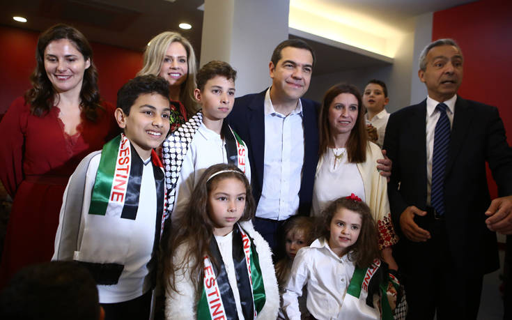 Στη συνέχεια, η παιδική χορωδία της Παλαιστινιακής Παροικίας Ελλάδας τραγούδησε τα κάλαντα στα ελληνικά και στα αραβικά. Παρών ήταν και ο αντιπρόεδρος της Παροικίας, Μουσταφά Αζούς, ο οποίος ευχήθηκε στον αρχηγό της αξιωματικής αντιπολίτευσης χρόνια πολλά και του πρόσφερε μία παλαιστινιακή μαντήλα, σύμβολο του αγώνα για ελευθερία, δικαιοσύνη και ειρήνη.