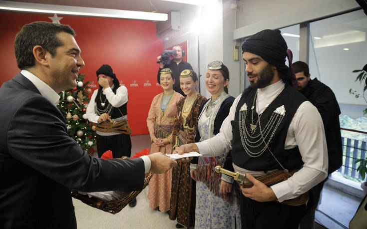 Ο πρόεδρος του ΣΥΡΙΖΑ άκουσε σήμερα ποντιακά και κρητικά κάλαντα στην Κουμουνδούρου. Μάλιστα, ο Αλέξης Τσίπρας δεν αρνήθηκε την πρόσκληση όταν ξεκίνησε ο ποντιακός χορός, σύμφωνα με το ρεπορτάζ της ΕΡΤ.