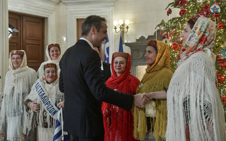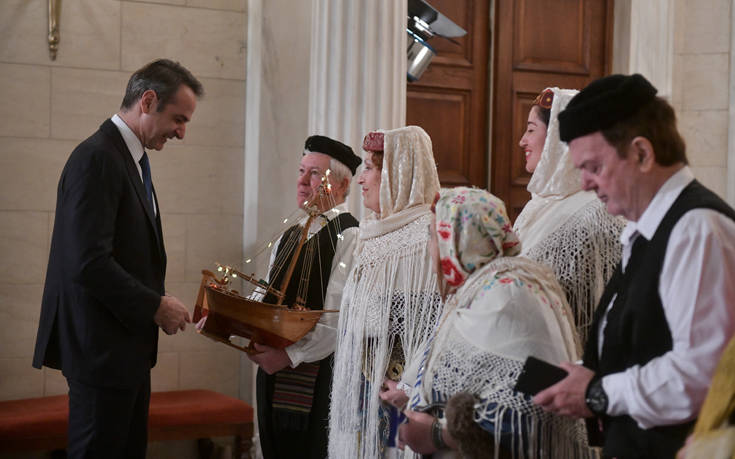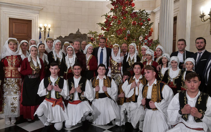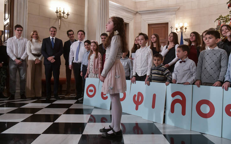 Ο Κυριάκος Μητσοτάκης άκουσε τα κάλαντα της Πρωτοχρονιάς στο Μέγαρο Μαξίμου από παιδιά και πολιτιστικούς συλλόγους.