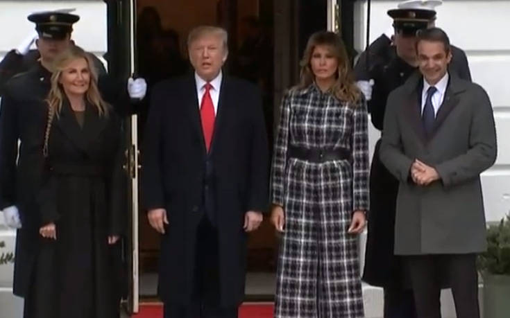 Στον Λευκό Οίκο έφτασε ο Κυριάκος Μητσοτάκης συνοδευόμενος από τη Μαρέβα Μητσοτάκη όπου συνάντησε τον πρόεδρο των ΗΠΑ Ντόναλντ Τραμπ, μαζί με τη σύζυγό του, Μελάνια Τραμπ.