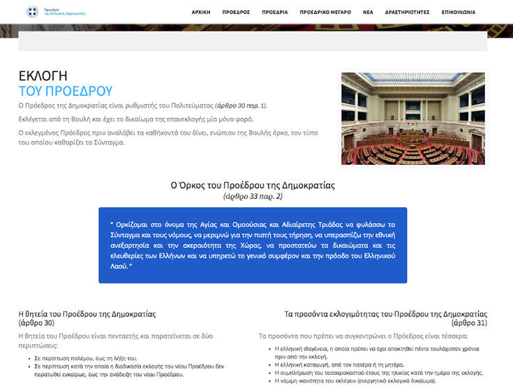 Η ιστοσελίδα της Προεδρίας της Δημοκρατίας σήμερα