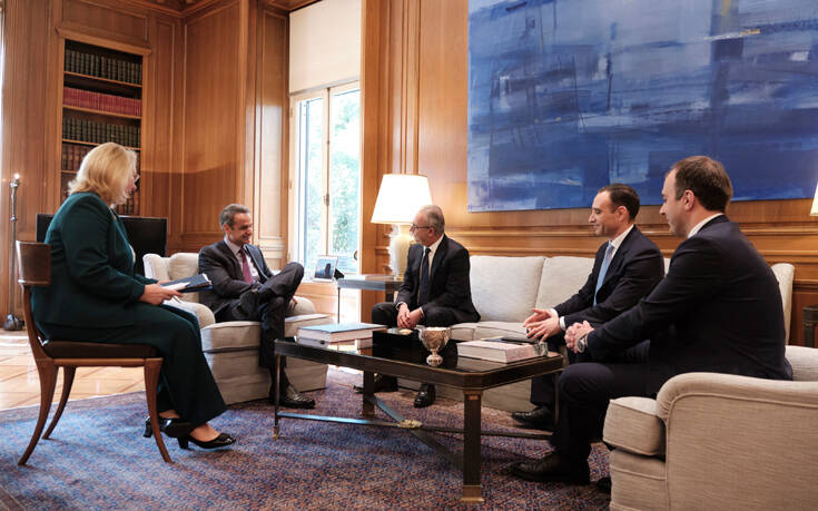 Πρωθυπουργός: «Είναι μεγάλη χαρά να σας υποδέχομαι στην πρώτη μας συνάντηση στο Μέγαρο Μαξίμου, με τη νέα μου ιδιότητα. Και είναι πάντα μεγάλη η χαρά όταν υποδέχομαι έναν πολύ καλό προσωπικό μου φίλο, έναν πολύ καλό φίλο της Νέας Δημοκρατίας κι έναν πολύ καλό φίλο της Ελλάδας. Καλώς ήρθες».