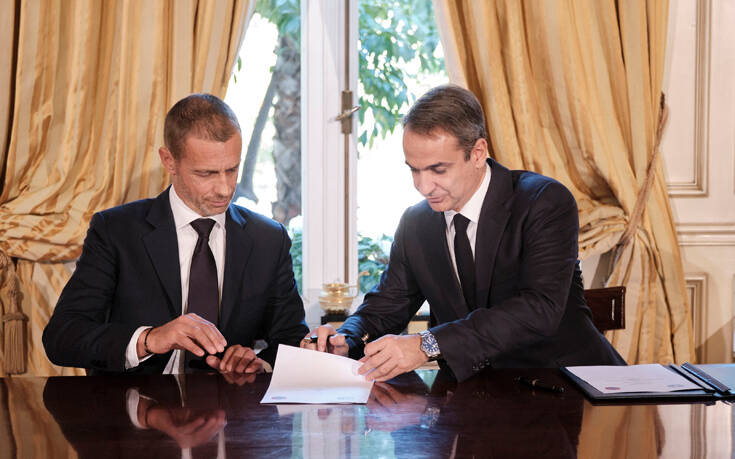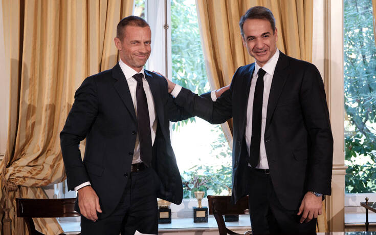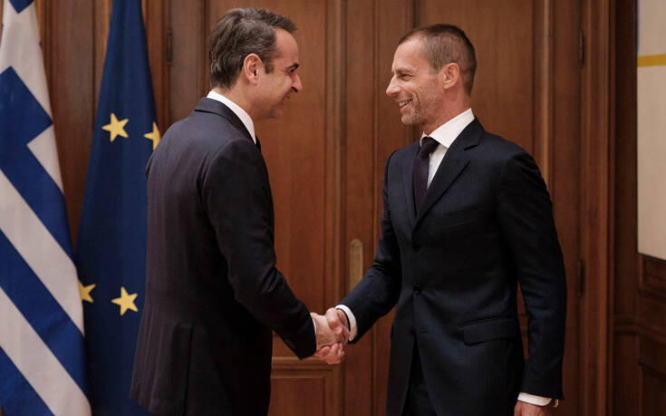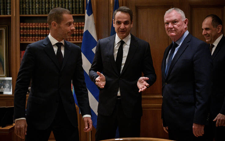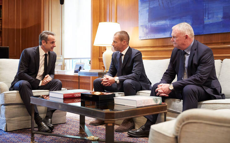 Ολοκληρώθηκε το πρωί της Τρίτης (25/02) στο Μέγαρο Μαξίμου η συνάντηση του πρωθυπουργού, Κυριάκου Μητσοτάκη, με τον πρόεδρο της UEFA, Αλεξάντερ Τσέφεριν, και τον αντιπρόεδρο της FIFA, Γκρεγκ Κλαρκ, παρουσία και των Ζόραν Λάκοβιτς και Χέρμπερτ Χούμπελ.