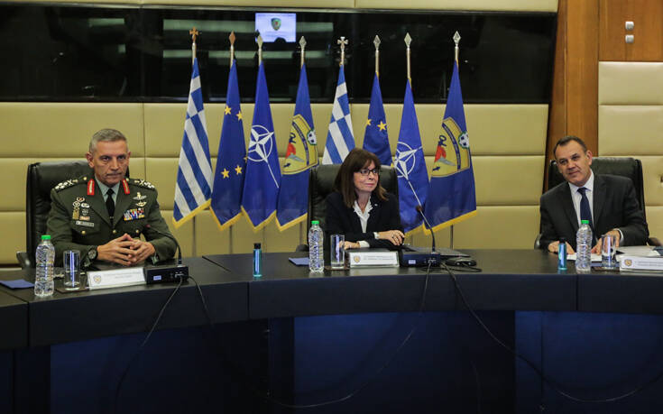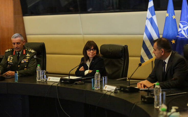 Ολοκληρώθηκε η επίσκεψη της Προέδρου της Δημοκρατίας Κατερίνας Σακελλαροπούλου στο υπουργείο Εθνικής Άμυνας όπου ενημερώθηκε επί θεμάτων αρμοδιότητας των Ενόπλων Δυνάμεων από το ΓΕΕΘΑ, παρουσία της πολιτικής και στρατιωτικής ηγεσίας του υπουργείου, όπως αναφέρει το Αθηναϊκό Πρακτορείο Ειδήσεων.