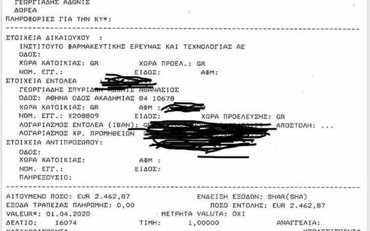Η ανάρτηση του υπουργού συνοδεύεται από την απόδειξη της τράπεζας.