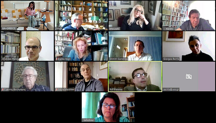 Μέσω τηλεδιασκέψεων, που «ένωσαν» την Αθήνα με τη Ρώμη, το Μόναχο, την Στοκχόλμη, την Καλιφόρνια, το Λονδίνο, τη Βοστώνη, το Νιου Τζέρσεϊ και τη Νέα Υόρκη, αλλά και τα Τρίκαλα, τη Θεσσαλονίκη, το Ρέθυμνο, την Κέρκυρα και το Βόλο, συνεδρίασε Μεγάλη Δευτέρα, Μεγάλη Τρίτη και Μεγάλη Τετάρτη, σε τρεις ομάδες εργασίας, η Ολομέλεια της Επιτροπής «Ελλάδα 2021».