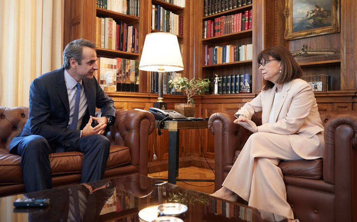 Με την Πρόεδρο της Δημοκρατίας Κατερίνα Σακελλαροπούλου συναντήθηκε ο πρωθυπουργός Κυριάκος Μητσοτάκης.