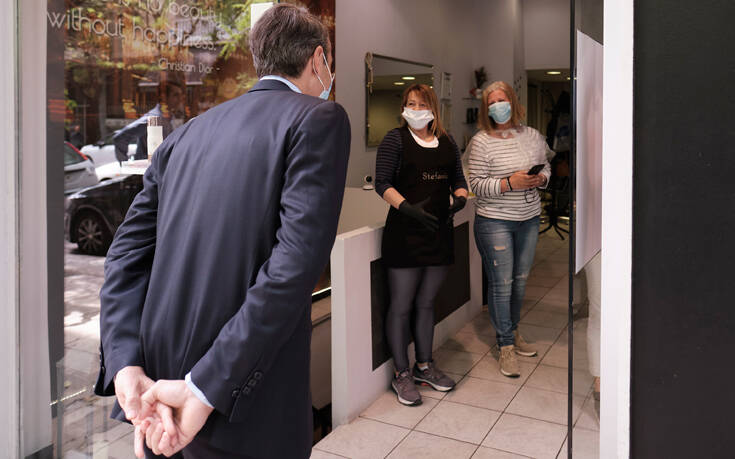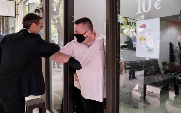 Ο κ. Μητσοτάκης περπάτησε σε εμπορικούς δρόμους θέλοντας να διαπιστώσει ο ίδιος το πώς προσαρμόζονται οι πολίτες και η επιχειρηματική δραστηριότητα στις νέες συνθήκες μετά τη σταδιακή άρση των περιοριστικών μέτρων.
