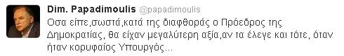Η δήλωση αυτή έδωσε «πάτημα» στον κ. Παπαδημούλη για να γράψει αργότερα στο Twitter: