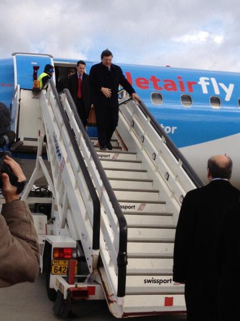 Λίγο μετά τις 12:30, προσγειώθηκε στον διάδρομο του διεθνούς αεροδρομίου «Ελευθέριος Βενιζέλος» της Αθήνας το αεροσκάφος, που μεταφέρει τους Ευρωπαίους αξιωματούχους, προκειμένου να συμμετάσχουν στην τελετή ανάληψης της Προεδρίας της ΕΕ, από την Ελλάδα.