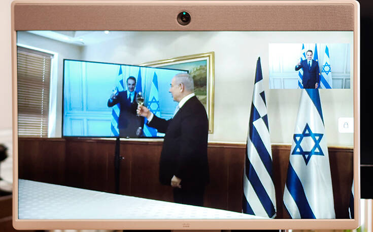 Τη σημαντική στρατηγική σχέση Ελλάδας – Ισραήλ επιβεβαίωσαν ο Έλληνας πρωθυπουργός, Κυριάκος Μητσοτάκης, και ο Ισραηλινός ομόλογός του, Μπενιαμίν Νετανιάχου, κατά τη διάρκεια τηλεδιάσκεψης, με αφορμή τη συμπλήρωση, σήμερα, 30 ετών από τη σύναψη πλήρων διπλωματικών σχέσεων μεταξύ των δύο χωρών.