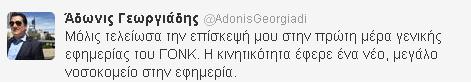 Ο κ. Γεωργιάδης, πάντως, μετά την έφοδό του, κοινοποίησε την επίσκεψή του στο προσωπικό του προφίλ στο twitter.