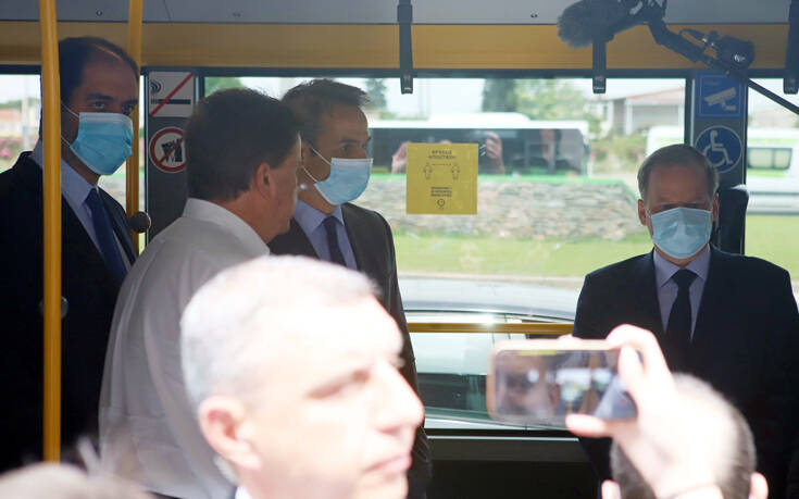Ο κ. Μητσοτάκης, που συνοδευόταν, μεταξύ άλλων, από τον υπουργό Μεταφορών Κώστα Αχ. Καραμανλή, αρχικά είδε ένα λεωφορείο της γραμμής 51 (Σίνδος-Νέος Σιδηροδρομικός Σταθμός) και στη συνέχεια, φορώντας προστατευτική μάσκα, όπως προβλέπεται, ανέβηκε σε σταθμευμένο άδειο όχημα της γραμμής 80, το οποίο εκτελεί το δρομολόγιο ΚΤΕΛ- Μάλγαρα και συνομίλησε με τον οδηγό.