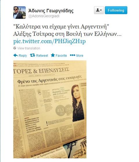 «Καλύτερα να είχαμε γίνει Αργεντινή, Αλέξης Τσίπρας στη Βουλή των Ελλήνων» έγραψε στο twitter του ο υπουργός Υγείας.