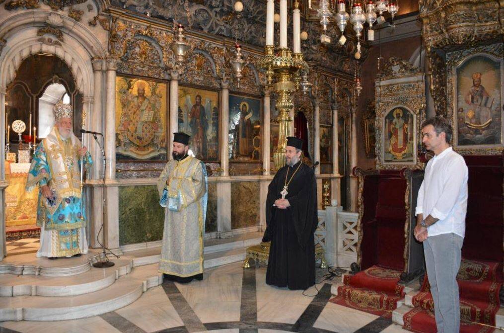 Στο ναό Ευαγγελιστρίας της Τήνου βρέθηκε ο Κυριάκος Μητσοτάκης την Κυριακή, ενώ παρέστη και στη Θεία Λειτουργία της Πεντηκοστής.