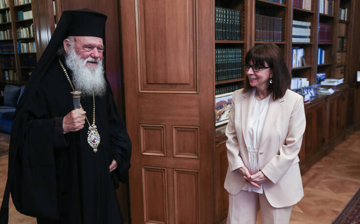 Το κατώφλι του Προεδρικού Μεγάρου πέρασε σήμερα ο Αρχιεπίσκοπος Ιερώνυμος, ο οποίος είχε συνάντηση με την Κατερίνα Σακελλαροπουλου.