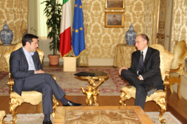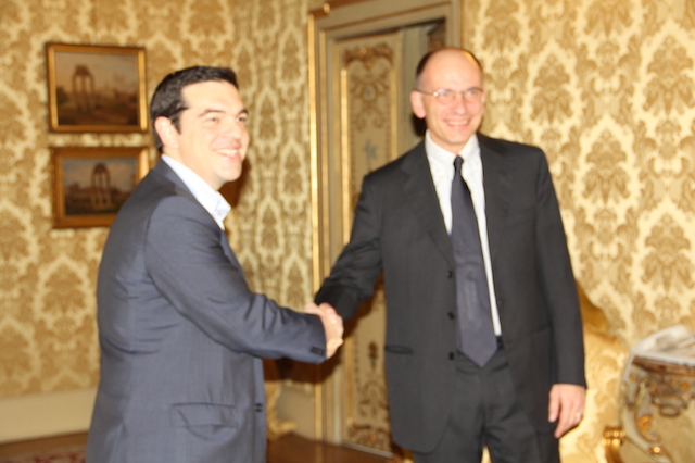 Η συνάντηση του προέδρου του ΣΥΡΙΖΑ Αλέξη Τσίπρα με τον Ιταλό πρωθυπουργό Ενρίκο Λέττα, στο κυβερνητικό μέγαρο της Ρώμης Παλάτσο Κίτζι, διήρκεσε περίπου τρία τέταρτα. Στο τέλος της συνάντησης ο πρόεδρος του ΣΥΡΙΖΑ δήλωσε: «Είχα την ευκαιρία να κουβεντιάσω με τον Ενρίκο Λέττα, με τον Ιταλό πρωθυπουργό και να τον ενημερώσω για τις βασικές θέσεις της υποψηφιότητάς μου για την προεδρία της Ευρωπαϊκής Επιτροπής.