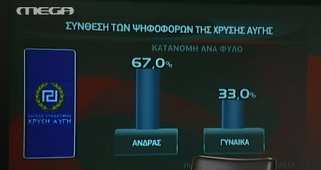 Λαϊκό, ανδρικό, νεανικό και «κεντρώο» κόμμα είναι τα χαρακτηριστικά της Χρυσής Αυγής, όπως προκύπτει από δημοσκόπηση της GPO για λογαριασμό της εκπομπής «Ανατροπή» του Mega.