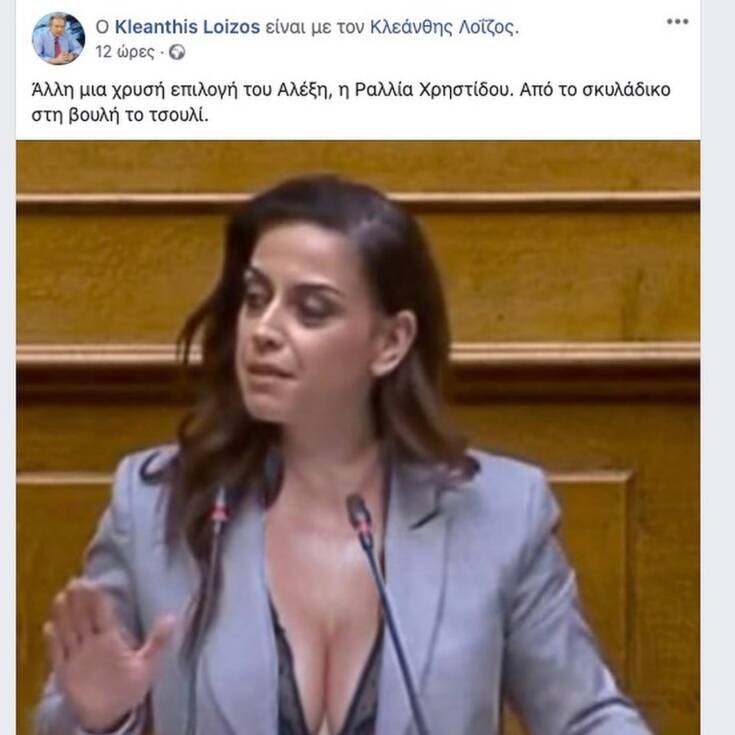 Συγκεκριμένα ανήρτησα φωτογραφία με την βουλευτή του Σύριζα Ραλλία Χρηστίδου στο βήμα της βουλής με “προκλητικό” ντεκολτέ για τον ιερό χώρο της δημοκρατίας. Δώδεκα ώρες μετά διαπίστωσα ότι η φωτογραφία ήταν προϊόν φωτομοντάζ.